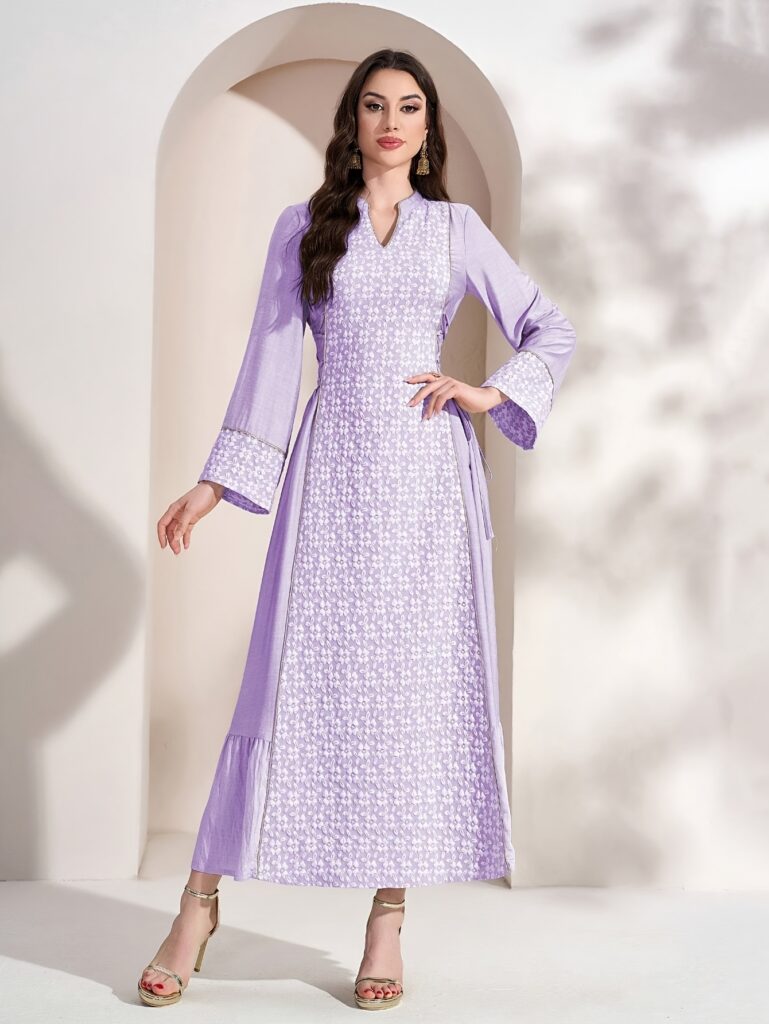 Original price was: BDT 5,844.BDT 3,330Current price is: BDT 3,330.Desert Bloom Women’s Notch Neck Floral Print Ruffle Hem Elegant Long Sleeve Arab Dress