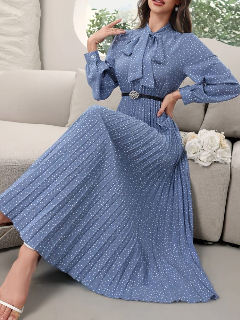 Original price was: BDT 6,634.BDT 3,790Current price is: BDT 3,790.Summer Breeze Women’s Elegant Blue & White Polka Dot A-Line Midi Dress