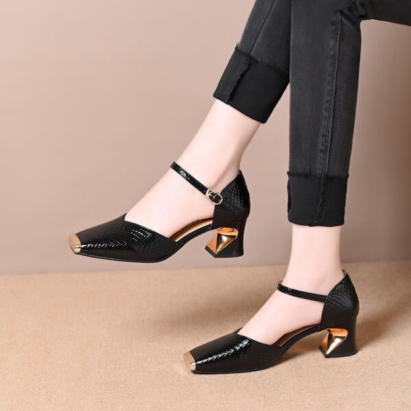 Newness Parisian Chic Square Toe Pumps: Classic French-inspired design in elegant black leather. Perfect for any occasion.
