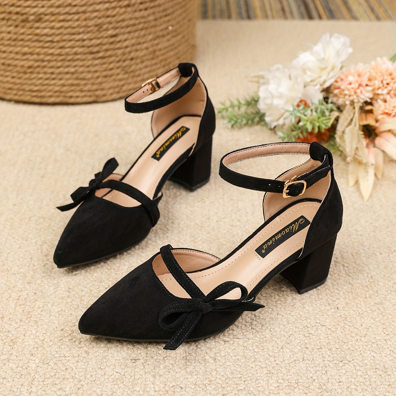 Step into timeless elegance with our Bow Detail Pointed-Toe Pumps. These versatile heels effortlessly transition from day to night, adding a touch of chic sophistication to any outfit. Crafted with a comfortable wide width and a mid-height block heel, these pumps are designed for all-day wear. The delicate bow detail adds a feminine touch, while the durable rubber sole ensures lasting quality. Explore our collection for more stunning footwear options and discover the latest trends in footwear at Vogue Runway.