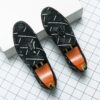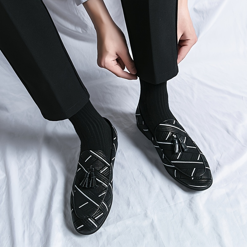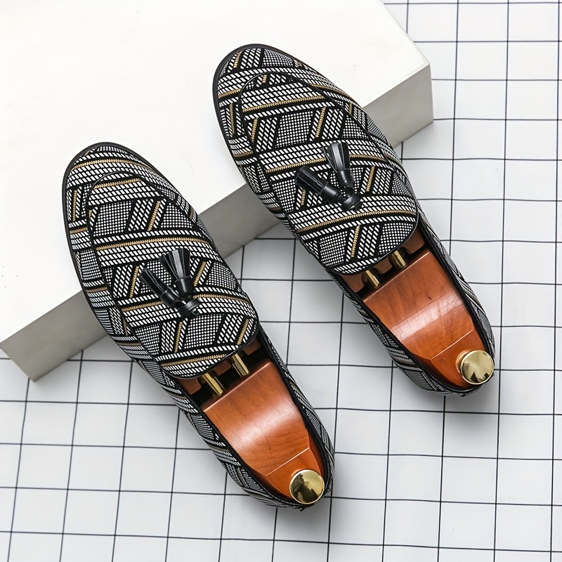 Step out in style with these men’s geometric loafers, perfect for any occasion. These versatile shoes effortlessly blend comfort and sophistication, making them ideal for weddings, parties, or your daily commute. In addition, they boast a unique black and white geometric pattern that adds a touch of modern flair to any outfit. Discover the perfect blend of style and comfort with these Newness loafers, or explore our stunning collection for more options. Stay ahead of the curve by checking out Vogue’s latest trends. Because these loafers are designed with durable rubber soles, they offer long-lasting wear. Furthermore, the PU upper, insole, and inner materials provide a luxurious feel while ensuring breathability. As a result, you’ll experience all-day comfort, making these men’s geometric loafers a must-have addition to your wardrobe. These men’s geometric loafers are a testament to quality craftsmanship and contemporary design. Therefore, they make a perfect choice for the modern man.