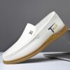Step into effortless style with these City Slicker Men’s Slip-On Loafers. These versatile loafers are perfect for any occasion, whether it’s a day at the office, a formal event, or a casual outing. Because of their minimalist white design, these men’s slip-on loafers seamlessly transition from day to night. In addition, the microfiber lining and soft cushioned insole ensure all-day comfort, while the non-slip rubber sole provides excellent traction. Furthermore, explore our stunning collection here and stay updated with Vogue’s latest trends. These men’s slip-on loafers are a must-have for any modern man’s wardrobe. Therefore, experience the perfect blend of style, comfort, and durability with Newness. As a result, these men’s slip-on loafers will quickly become your go-to footwear choice.