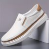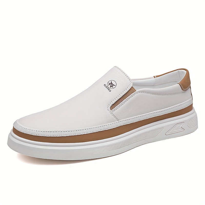 Step out in style with these men’s slip-on loafers, the perfect blend of comfort and contemporary design. These versatile loafers are ideal for any casual occasion, boasting a sleek white and brown color combination and an embossed design that adds a touch of sophistication. Because of their comfortable soft sole, you can wear these all day long. Furthermore, the microfiber synthetic leather upper ensures durability, while the PU insole and inner lining offer breathability. In addition, the rubber sole provides excellent grip and stability. As a result, these loafers are perfect for the modern man on the go. Explore our stunning collection and stay ahead of Vogue’s latest trends.