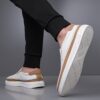 Comfortable and stylish. Perfect for casual outings. The white and brown combination is really nice.