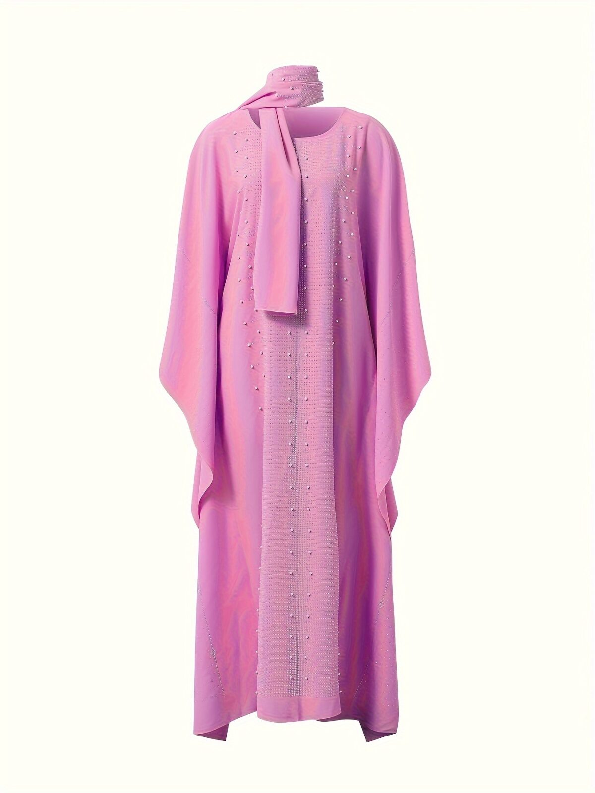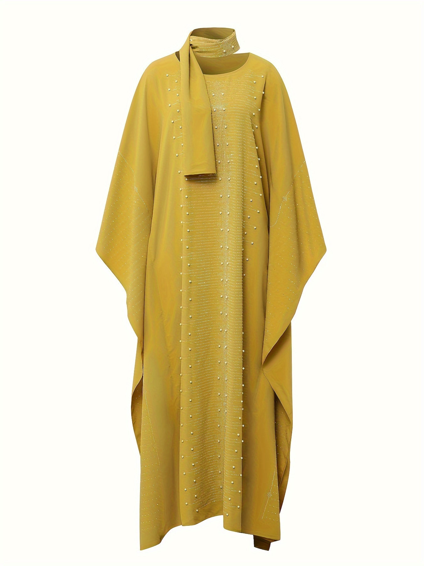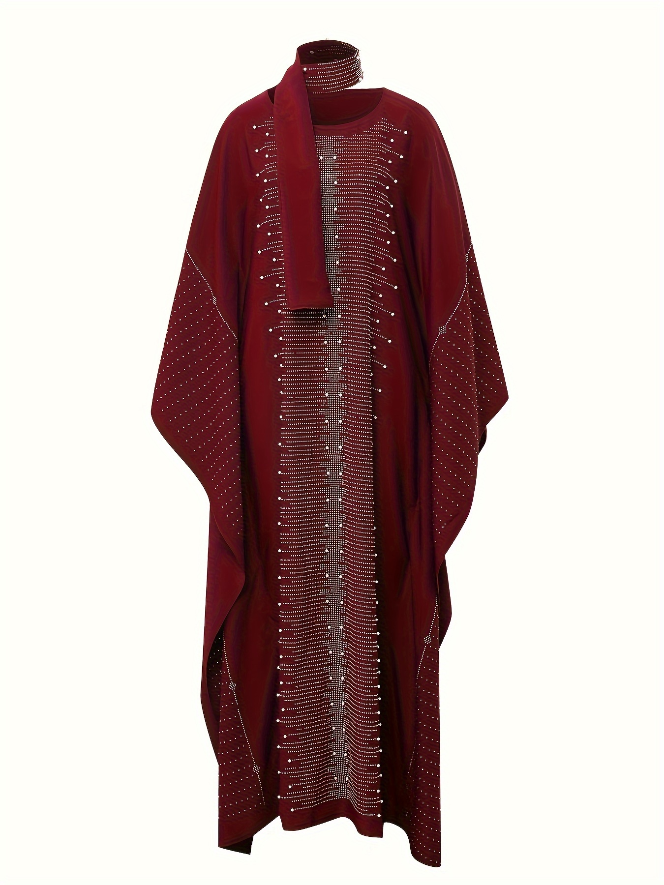 The Desert Bloom Rhinestoned Modest Maxi Dress is a perfect choice for those seeking a blend of elegance and comfort. This stunning dress offers a flattering silhouette with its rhinestone embellishments, making it ideal for spring or summer occasions. The rhinestoned modest maxi dress boasts a flowing, loose fit, offering ultimate comfort without compromising style. It’s crafted from high-quality polyester, making it breathable and easy to care for. Because of its versatility, you can dress it up with heels for a special occasion or dress it down with sandals for a more casual look. Check out explore our stunning collection and stay updated with Vogue’s latest trends. This dress is a must-have for any fashion-conscious individual looking for a stylish yet modest option. Therefore, add this rhinestoned modest maxi dress to your wardrobe and experience the perfect combination of elegance and ease. Furthermore, its simple yet sophisticated design ensures that it remains a timeless piece in your collection. The rhinestone details add a touch of glamour, transforming it into a perfect outfit for any special occasion.