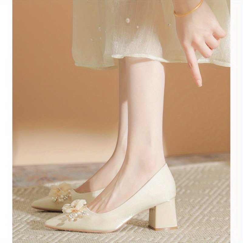 These meticulously crafted heels showcase a chic pointed toe, elongating your legs and adding a touch of sophistication to your silhouette. The shimmering sequins interspersed with the floral appliqués catch the light beautifully, creating a subtle sparkle with every step. The comfortable block heel provides excellent support, making them perfect for long days or nights out. The soft, synthetic lining ensures a comfortable fit, while the durable PU sole offers lasting wear. Whether paired with a flowing dress or tailored trousers, these versatile heels effortlessly transition from day to night. Embrace timeless elegance with the Ethereal Bloom Floral Block Heels, a must-have addition to any discerning woman’s wardrobe.