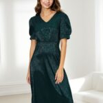 Excellent product. The green color with golden accents looks stunning. The woven fabric is comfortable, and the dress fits perfectly. I am extremely satisfied with the purchase from Newness.
