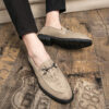 Men’s slip-on loafers are the epitome of versatile footwear. These comfortable business casual shoes seamlessly transition from the office to a wedding, making them a perfect choice for the modern man. Because of their crocodile-textured PU upper, rubber sole, and EVA insole, these loafers offer both style and comfort. Furthermore, the breathable round-toe design ensures all-season wearability. You can explore our stunning collection here and stay updated with Vogue’s latest trends.