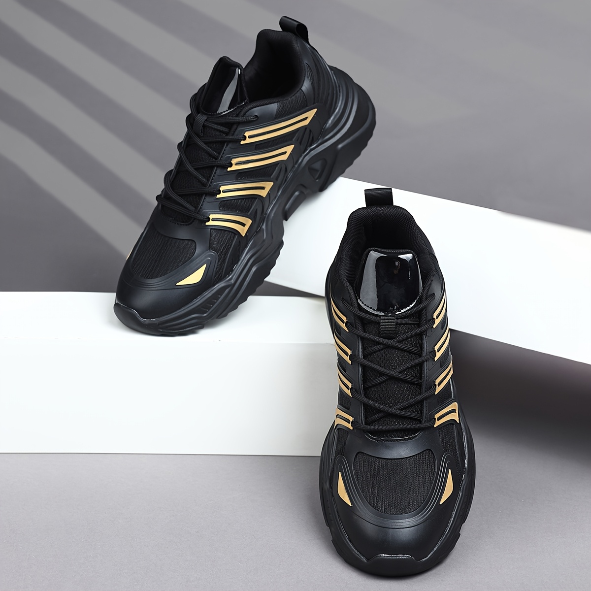 Comfortable and stylish shoes. The black and gold color combination is very attractive. Excellent for casual wear and running. I am very satisfied with my purchase from Newness.