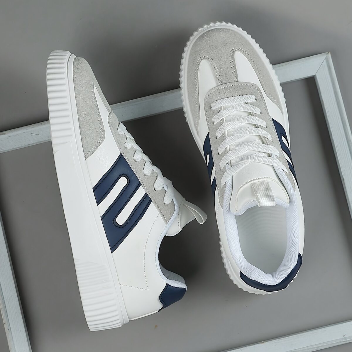 These sneakers are very comfortable and stylish. I love the light grey and navy blue color combination. The EVA sole provides great cushioning. I would definitely recommend them.