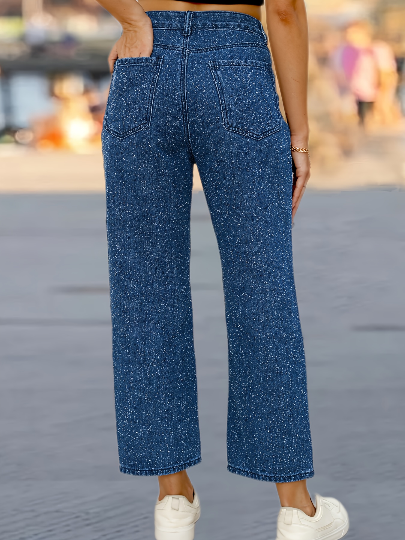 I love the cropped length and the wide leg style. These jeans are very comfortable and stylish. Perfect for any occasion!