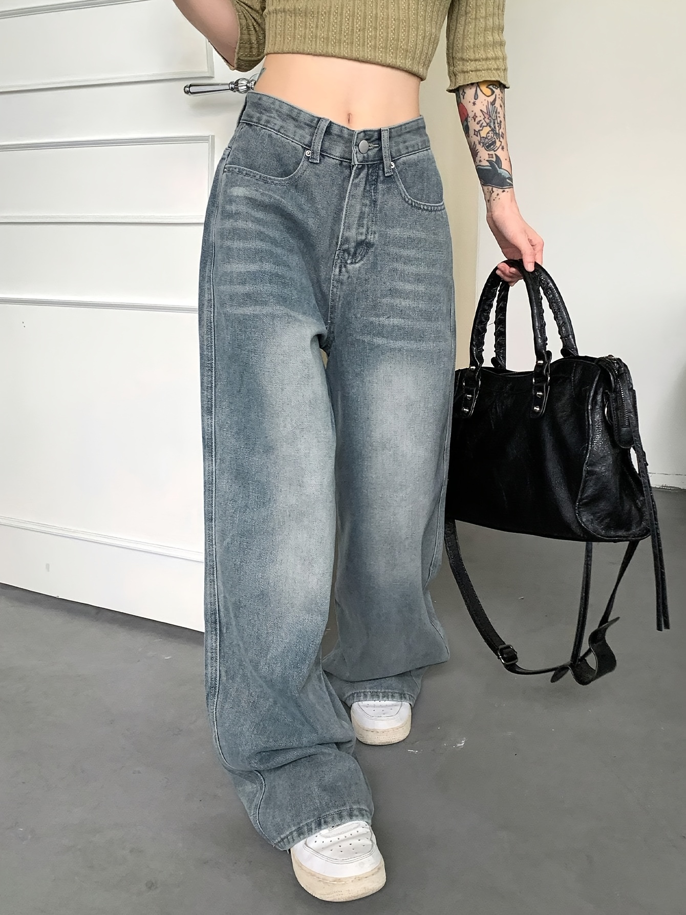 I really like these wide-leg jeans. The high waist is flattering, and the fabric is soft and comfortable. Perfect for casual wear!