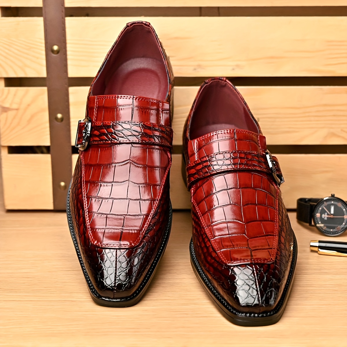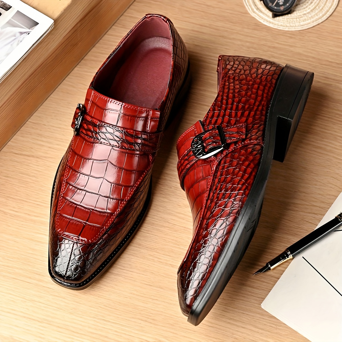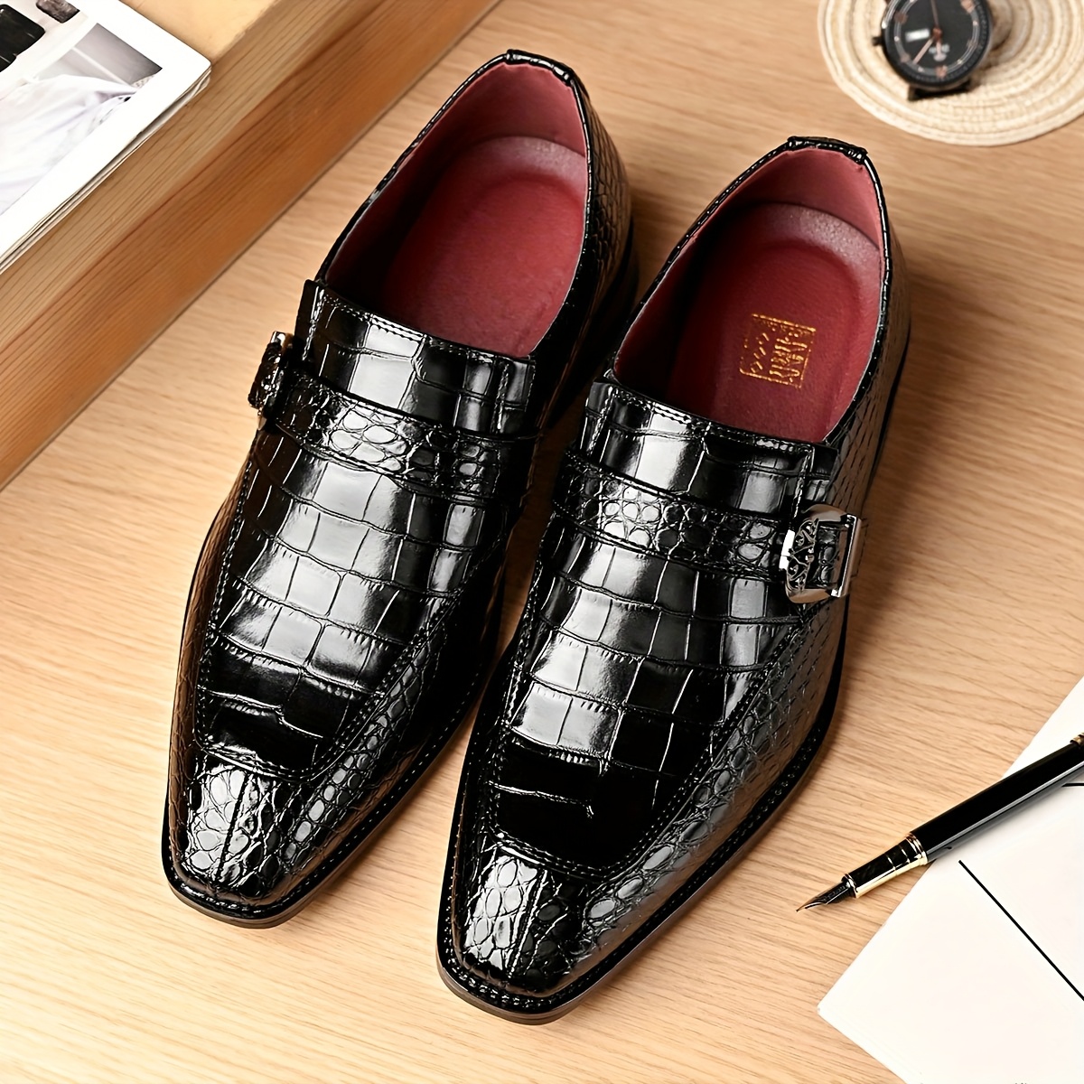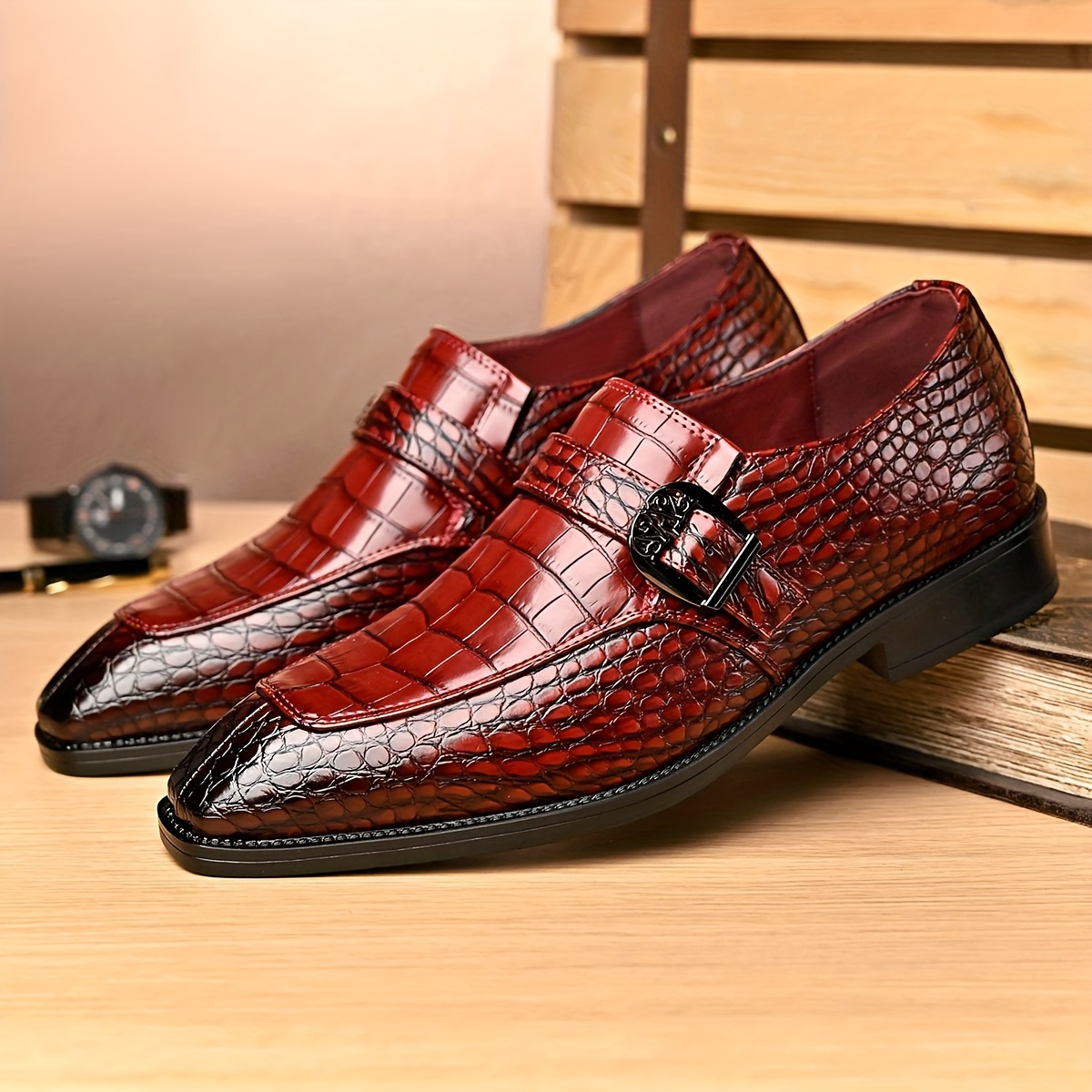 These men’s crocodile dress loafers are the perfect blend of classic style and modern comfort. Because they feature a sophisticated crocodile-textured design, these loafers are ideal for any formal occasion. In addition, the slip-on design with an adjustable buckle closure makes them incredibly easy to wear. Furthermore, the durable PU sole provides excellent grip and all-day comfort, making them suitable for business meetings, weddings, or even casual outings. Therefore, elevate your footwear game with these men’s crocodile dress loafers and explore our stunning collection. As a result of their timeless design, you’ll find these loafers complement any attire. Stay ahead of the curve with Vogue’s latest trends. Men’s crocodile dress loafers are a must-have for the modern gentleman.